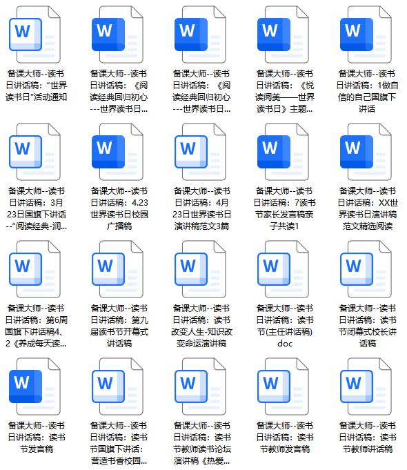 中小学4月23日世界读书日国旗下讲话稿共84份,此资料包为转载自课件站{kjzhan},仅提供网盘下载,如介意,请不要下载。
