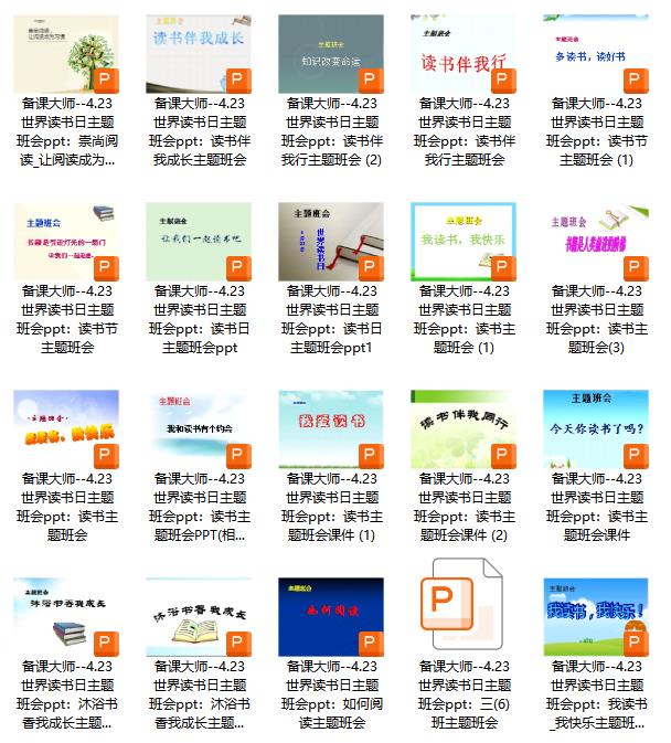 中小学4月23日世界读书日主题班会ppt共37份,此资料包为转载自课件站{kjzhan},仅提供网盘下载,如介意,请不要下载。