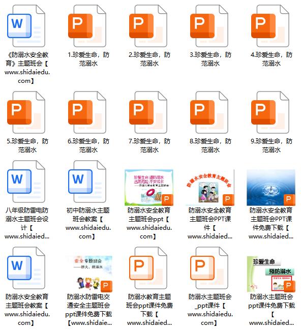 中小学防溺水主题班会课件ppt21份+教案15份,此资料包为转载自课件站{kjzhan},仅提供网盘下载,如介意,请不要下载。