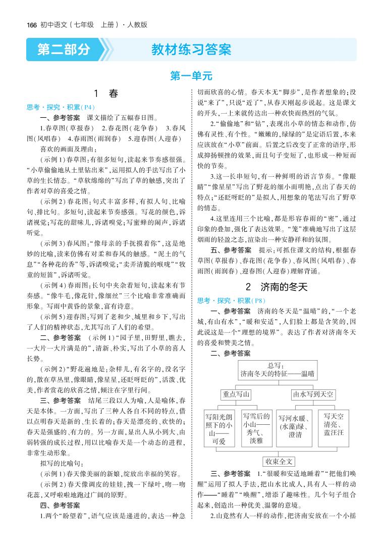 24秋新教材部编人教版初中语文七上人教版-教材练习答案,仅提供网盘下载,如介意,请不要下载。
