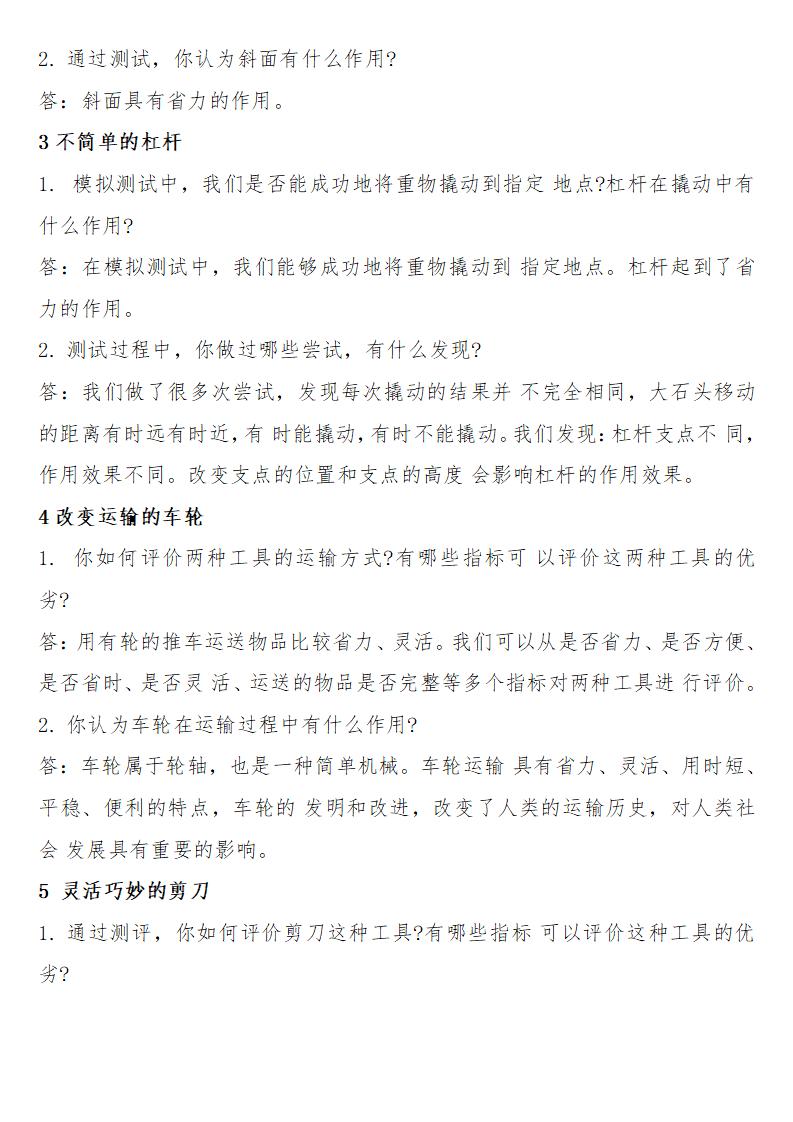 教科版科学五年级上册第二单元教材问题解答课本研讨问题答案