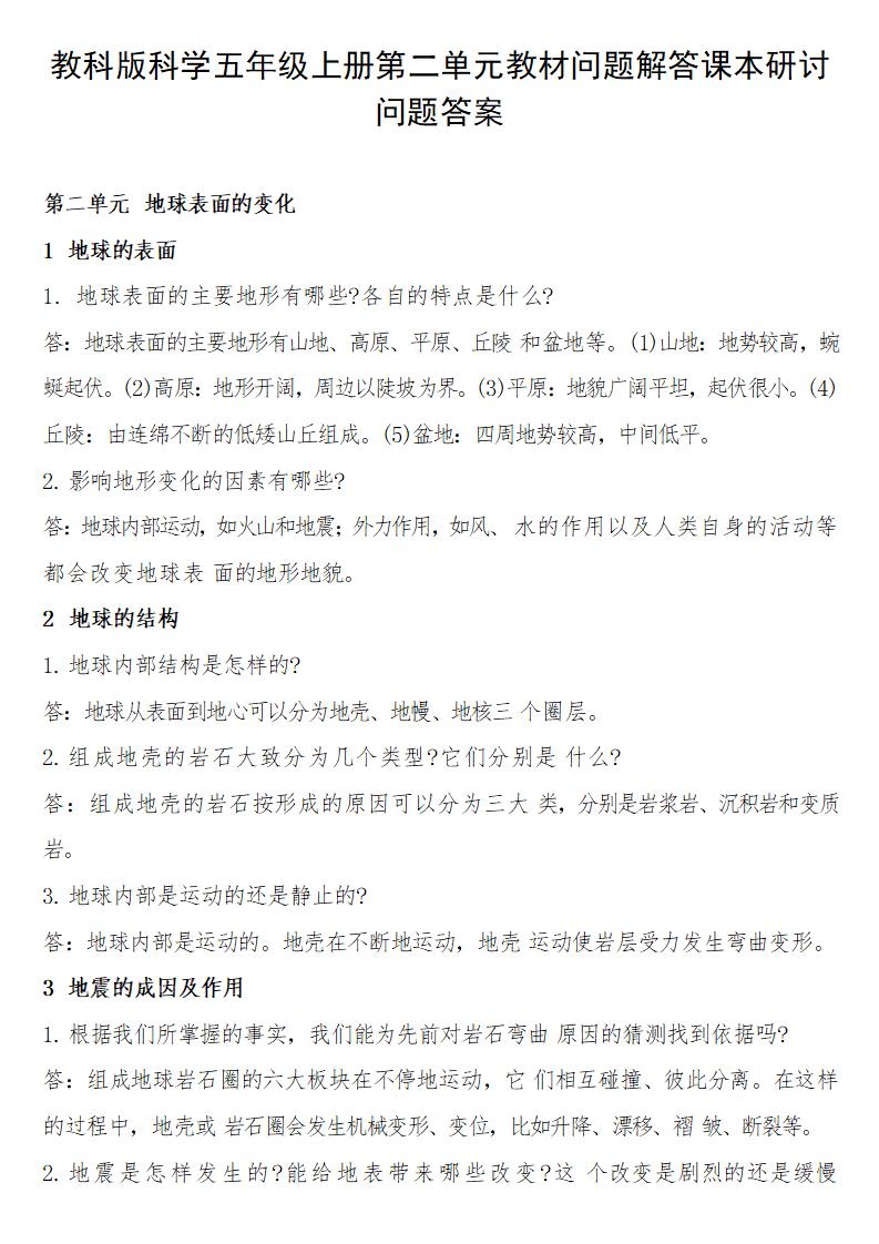 教科版科学五年级上册第二单元教材问题解答课本研讨问题答案,仅提供网盘下载,如介意,请不要下载。