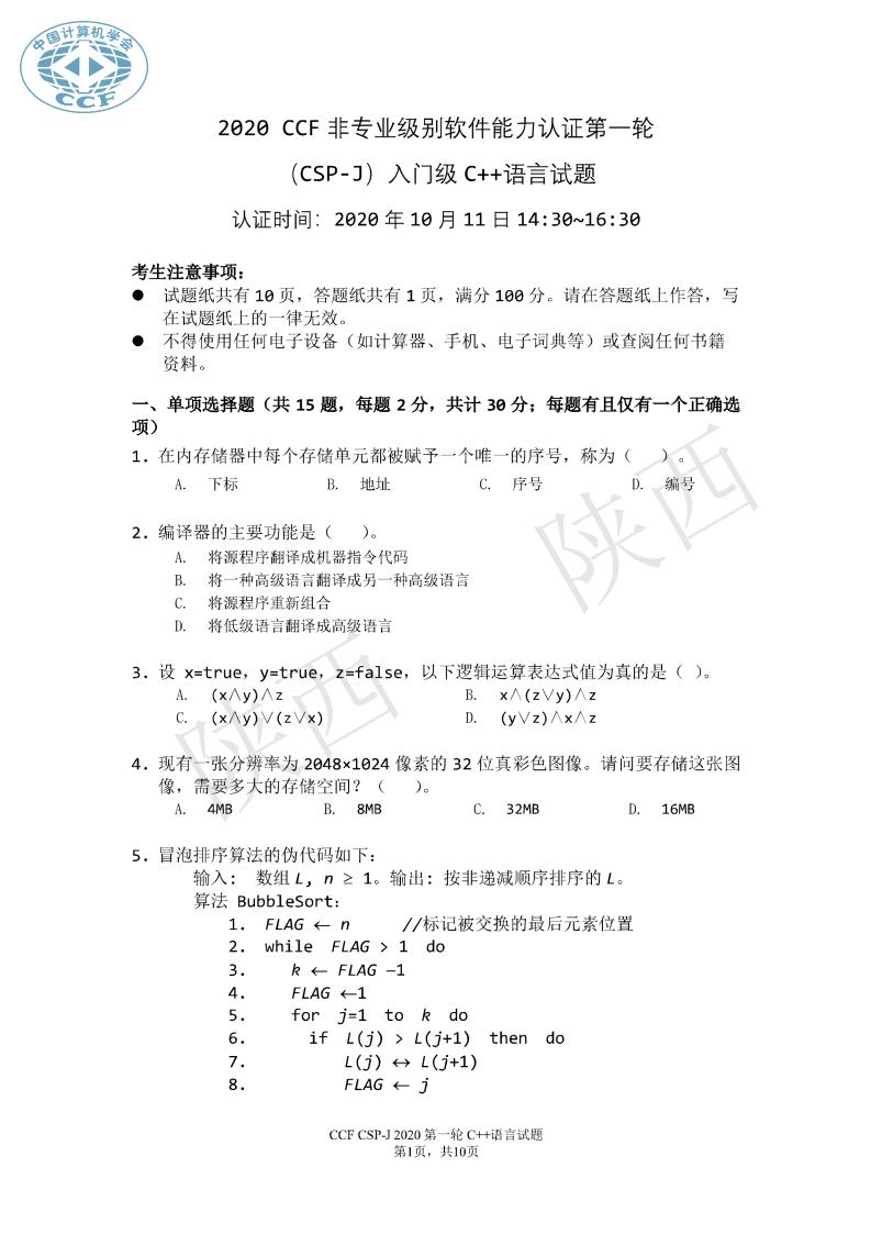 CSP2020普及组初赛真题,仅提供网盘下载,如介意,请不要下载。