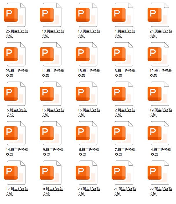 中小学班主任经验交流ppt共25份,此资料包为转载自课件站{kjzhan},仅提供网盘下载,如介意,请不要下载。