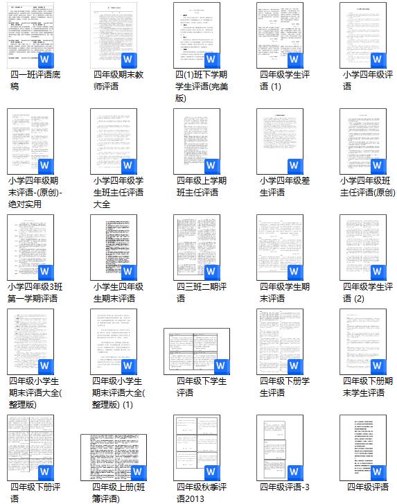 四年级期末评语_小学四年级学期评语大全(共34份),此资料包为转载自课件站{kjzhan},仅提供网盘下载,如介意,请不要下载。