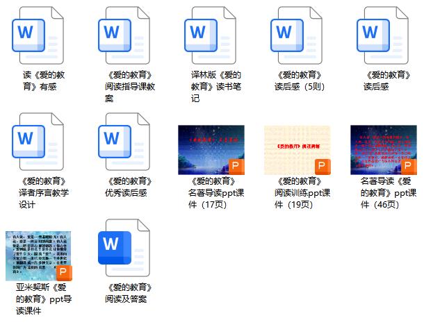 爱的教育名著导读资料集ppt课件+教案+读后感+读书笔记(12个),此资料包为转载自课件站{kjzhan},仅提供网盘下载,如介意,请不要下载。