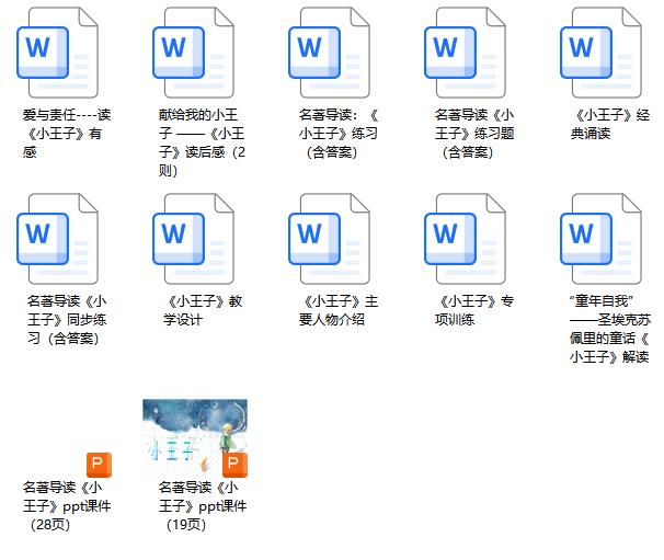 小王子名著导读资料集ppt课件+教案+读后感+同步检测(共12个),此资料包为转载自课件站{kjzhan},仅提供网盘下载,如介意,请不要下载。